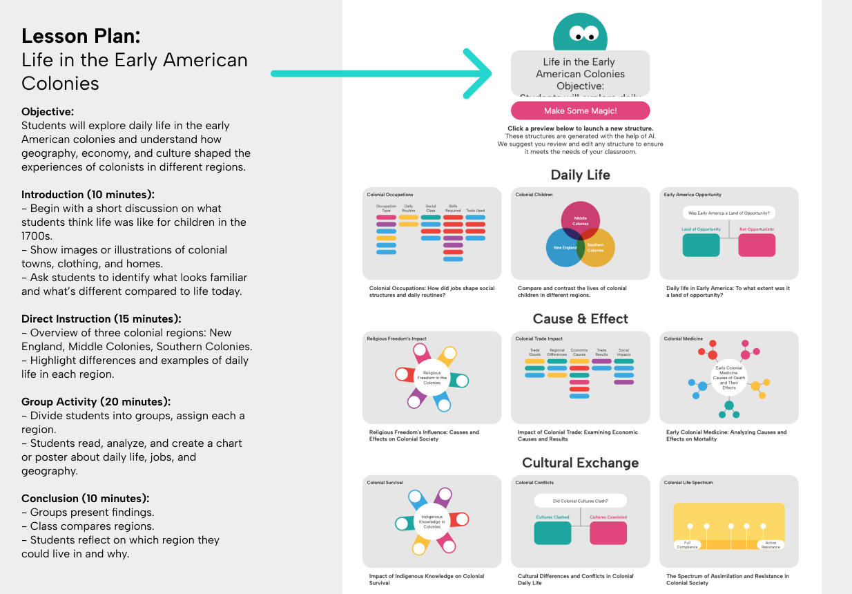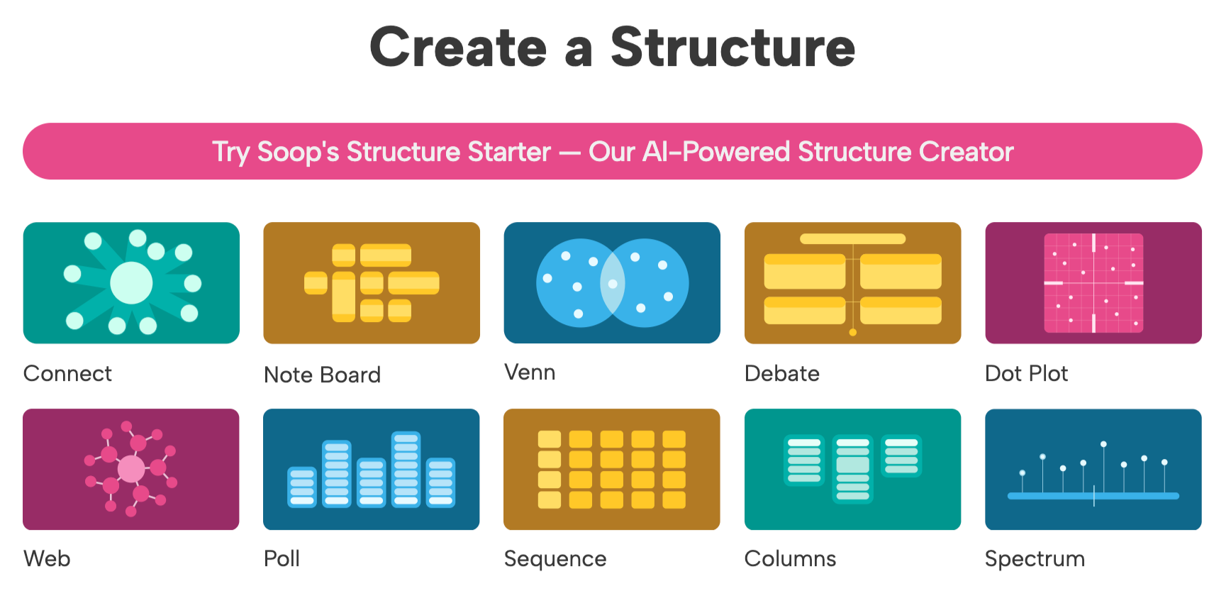 Imagine typing anything into a box—a book title, your next standard, tomorrow's lesson plan—and instantly getting classroom-ready structures you can use right away. That’s the power of Soop’s Structure Starter. It understands the topic at hand and generates relevant structures that let you explore your content in ways you might not have imagined.