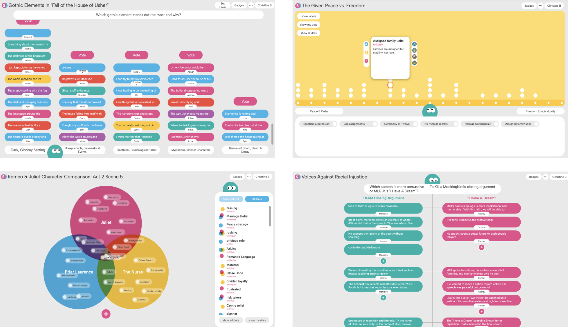 Superstructures gives your English class a space to reflect on what they’ve read and engage in a thoughtful conversation about meaning, interpretation, and expression, all while seeing how their classmates are thinking in real time. Check out Superstructures for English as well as our English Sample Structures. Here are more ideas: